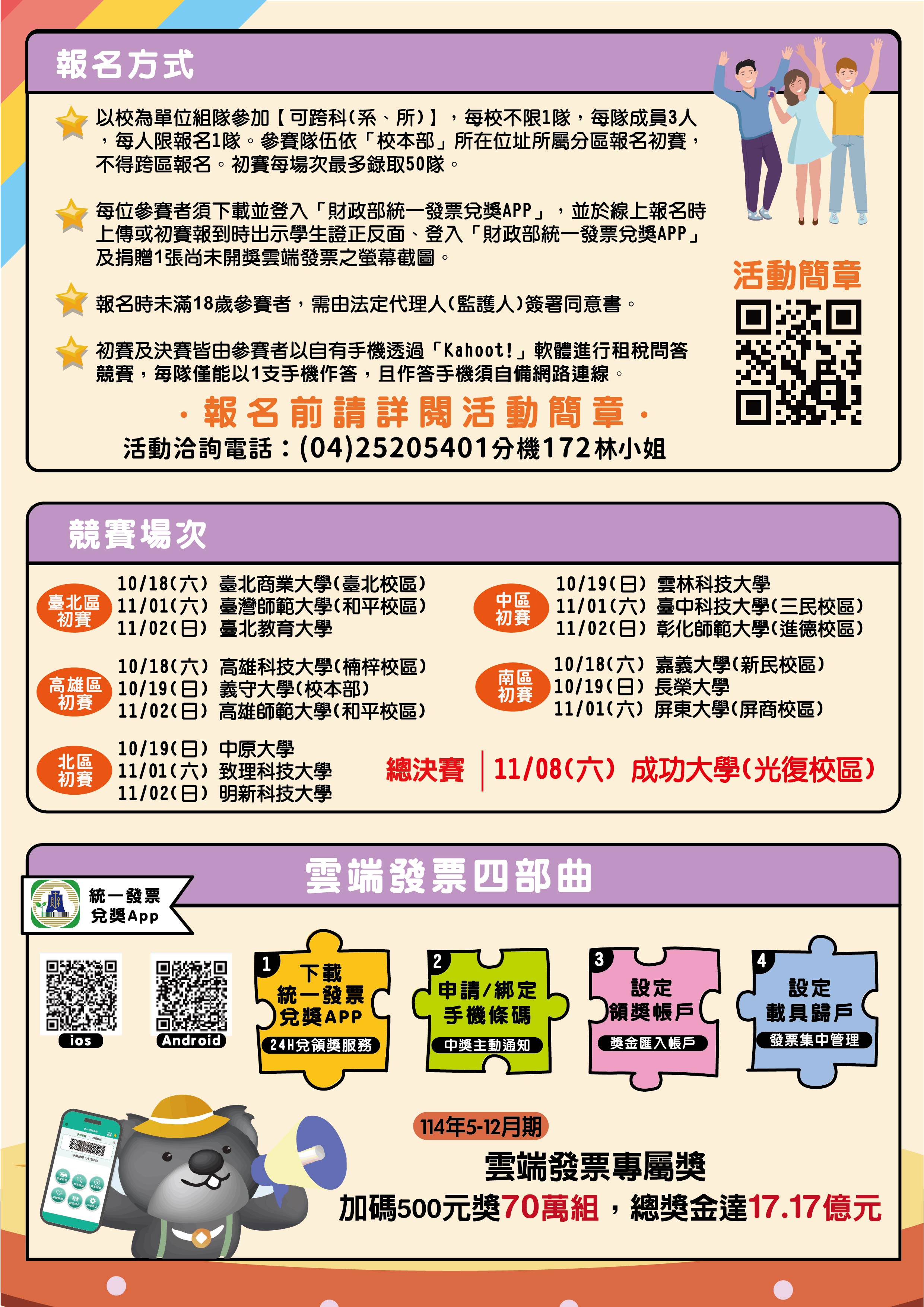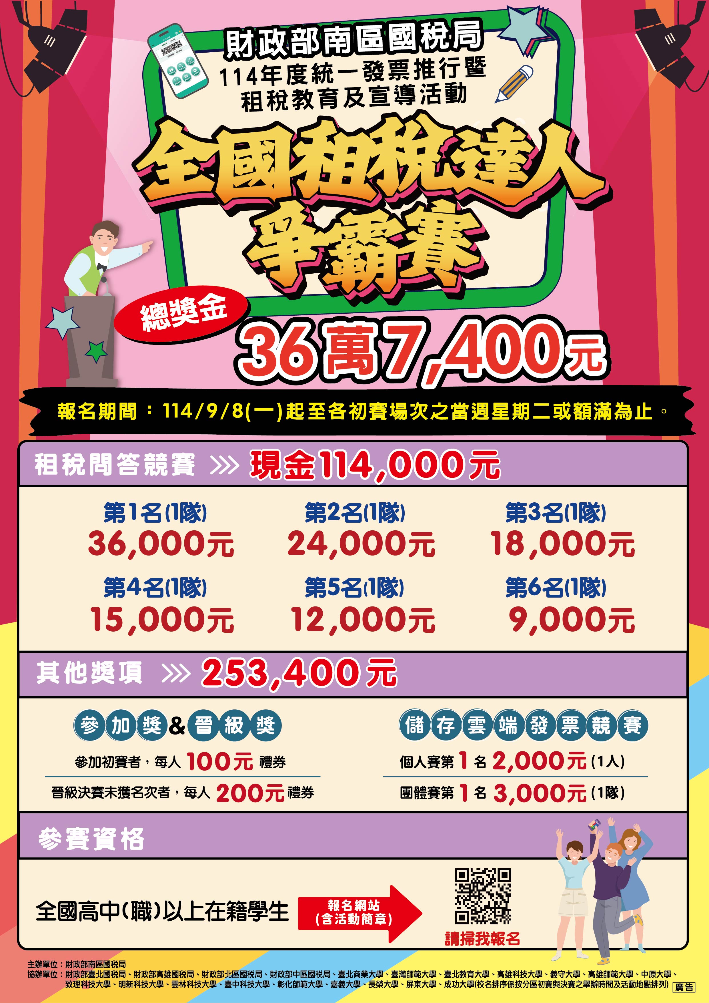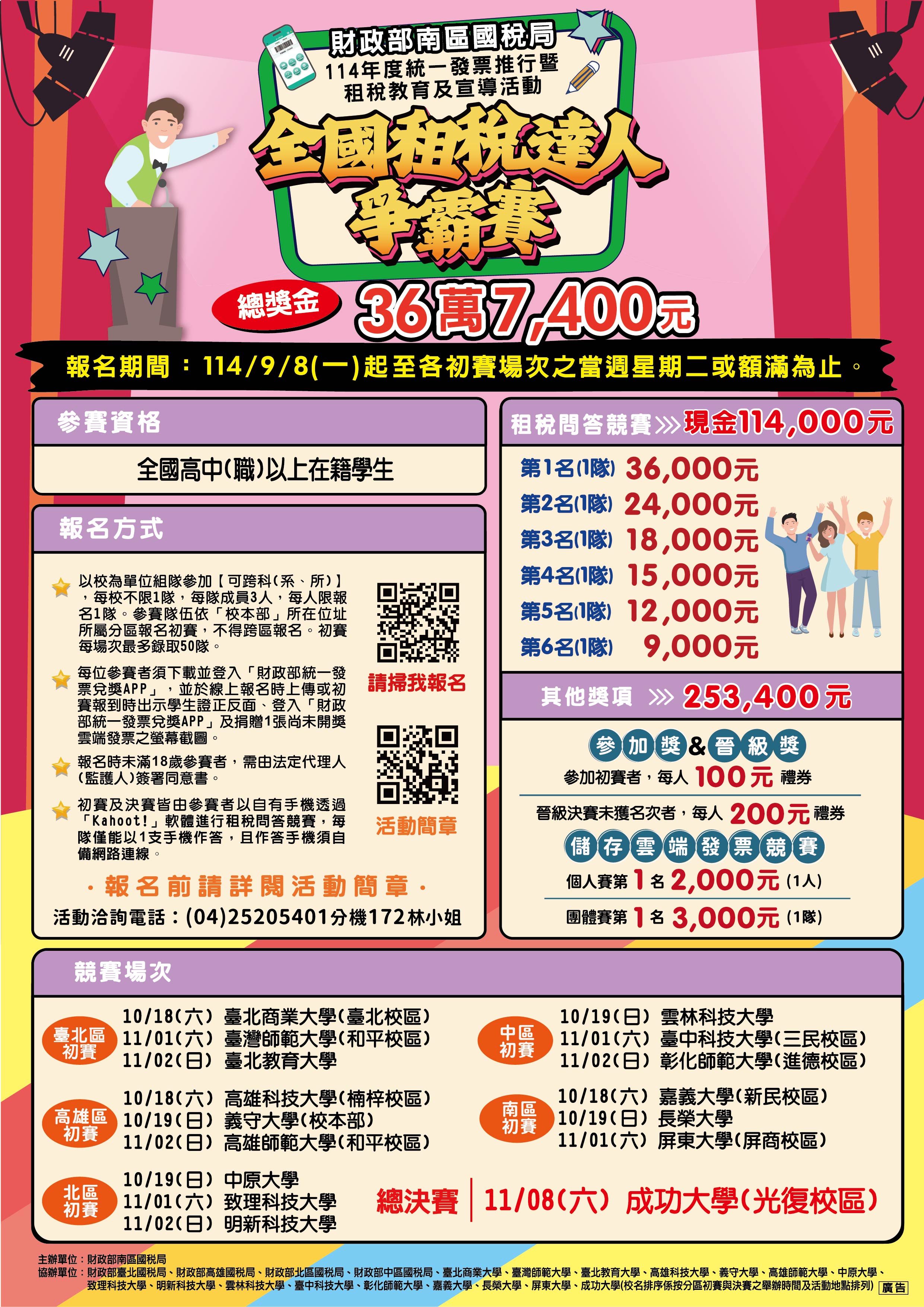 [轉知]財政部南區國稅局舉辦114年度統一發票推行暨「全國租稅達人爭霸賽」租稅教育及宣導活動