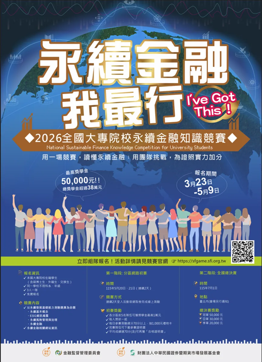 二、本競賽為首度辦理,主管機關與金融服務業界對本活動目的十分認同;學生如能及早掌握國家永續金融政策方向與市場趨勢,有助於培養符合產業需求之永續金融實務能力,為未來升學與就業奠定良好基礎。