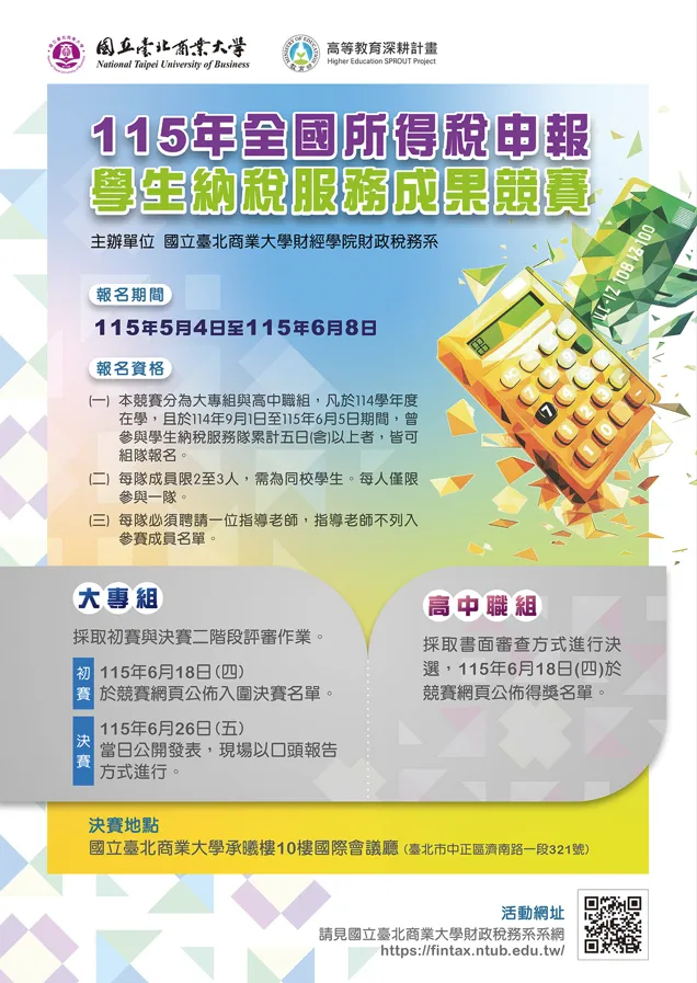函轉:國立臺北商業大學財經學院財政稅務系辦理「115年全國所得稅申報學生納稅服務成果競賽」,歡迎組隊報名參加